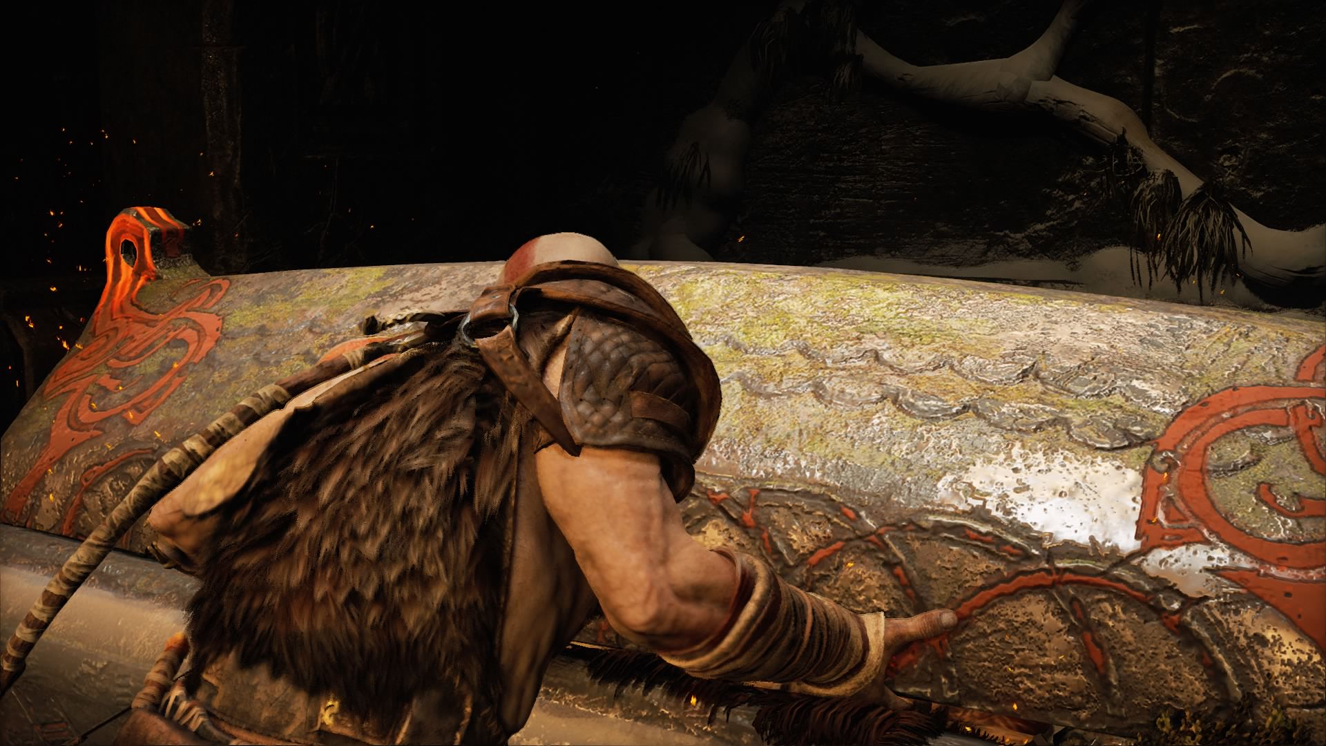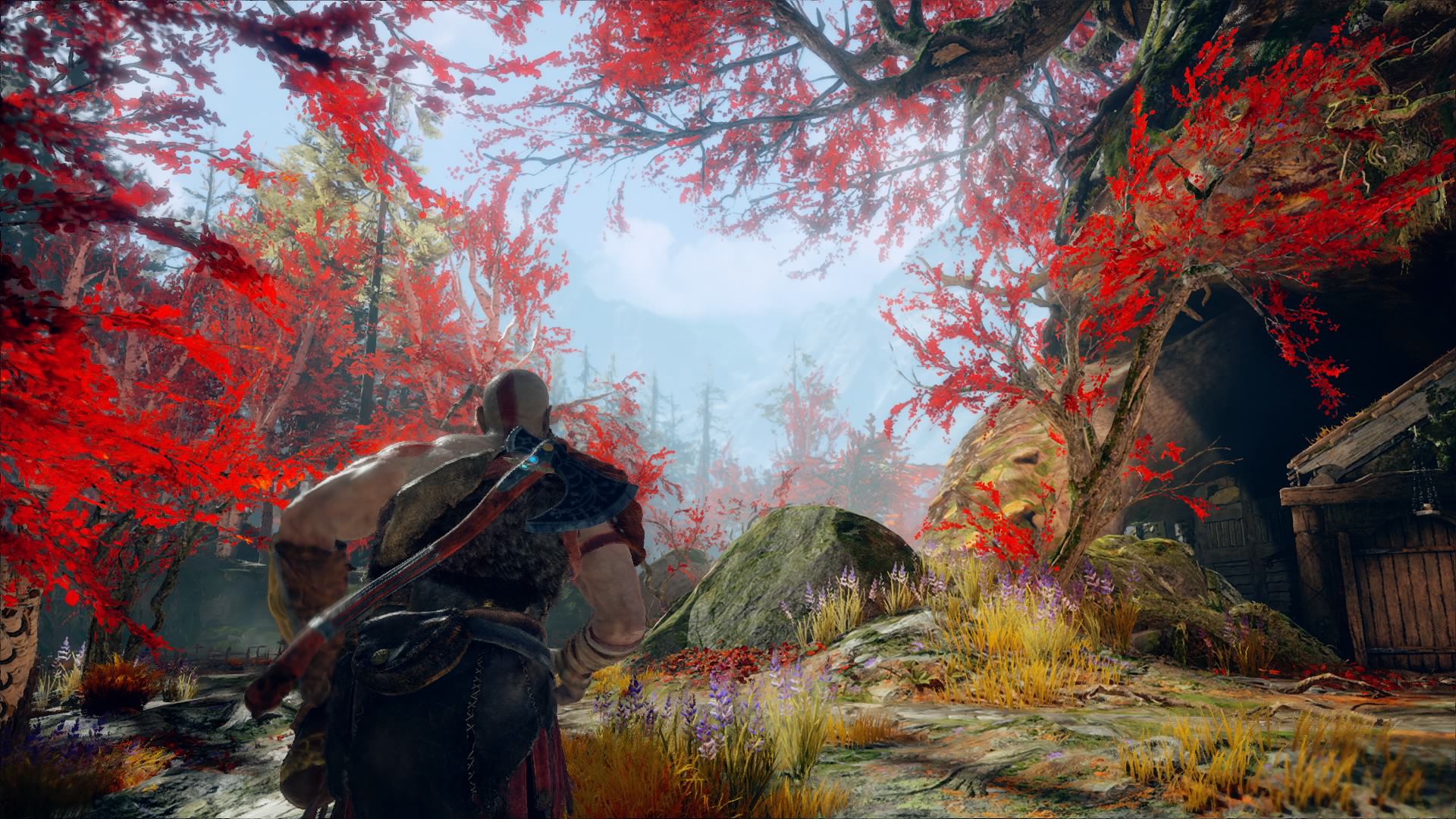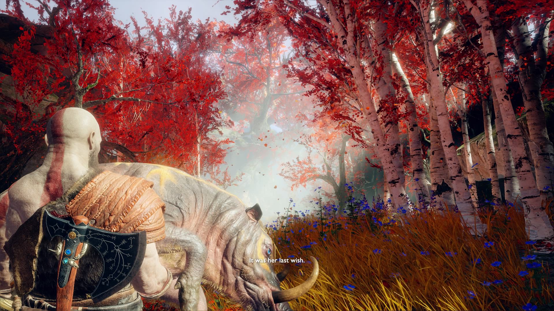 So poetic, the red leaves reminds Kratos of the bloody past behind him. …Did I do that poetic thing right?