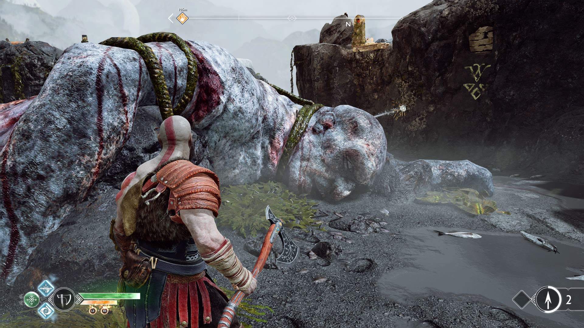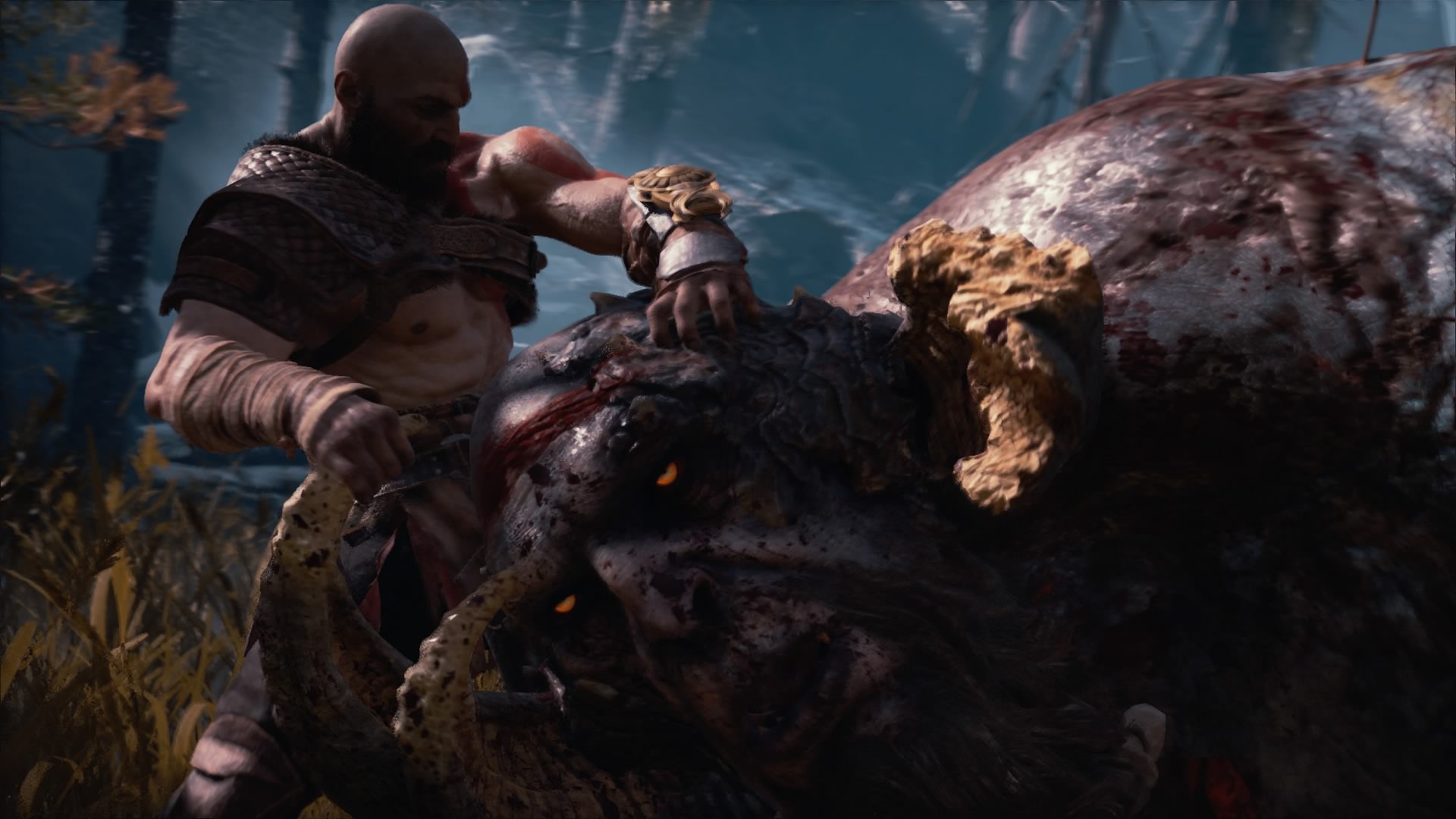 This creature is long dead before Kratos even came to the island. Poor thing didn’t get to die in Kratos’ strong, manly arms.