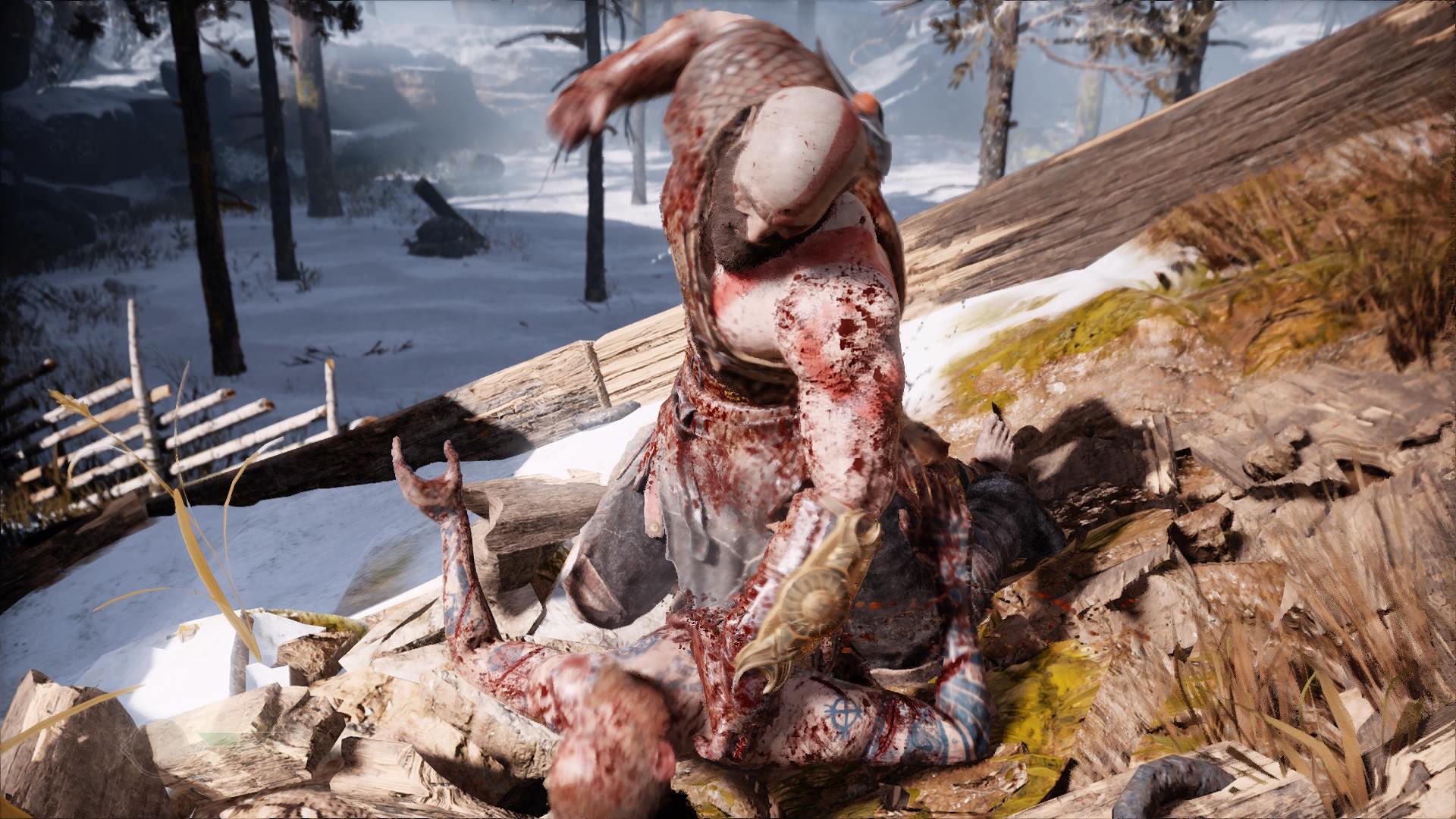 Kratos beating someone up.