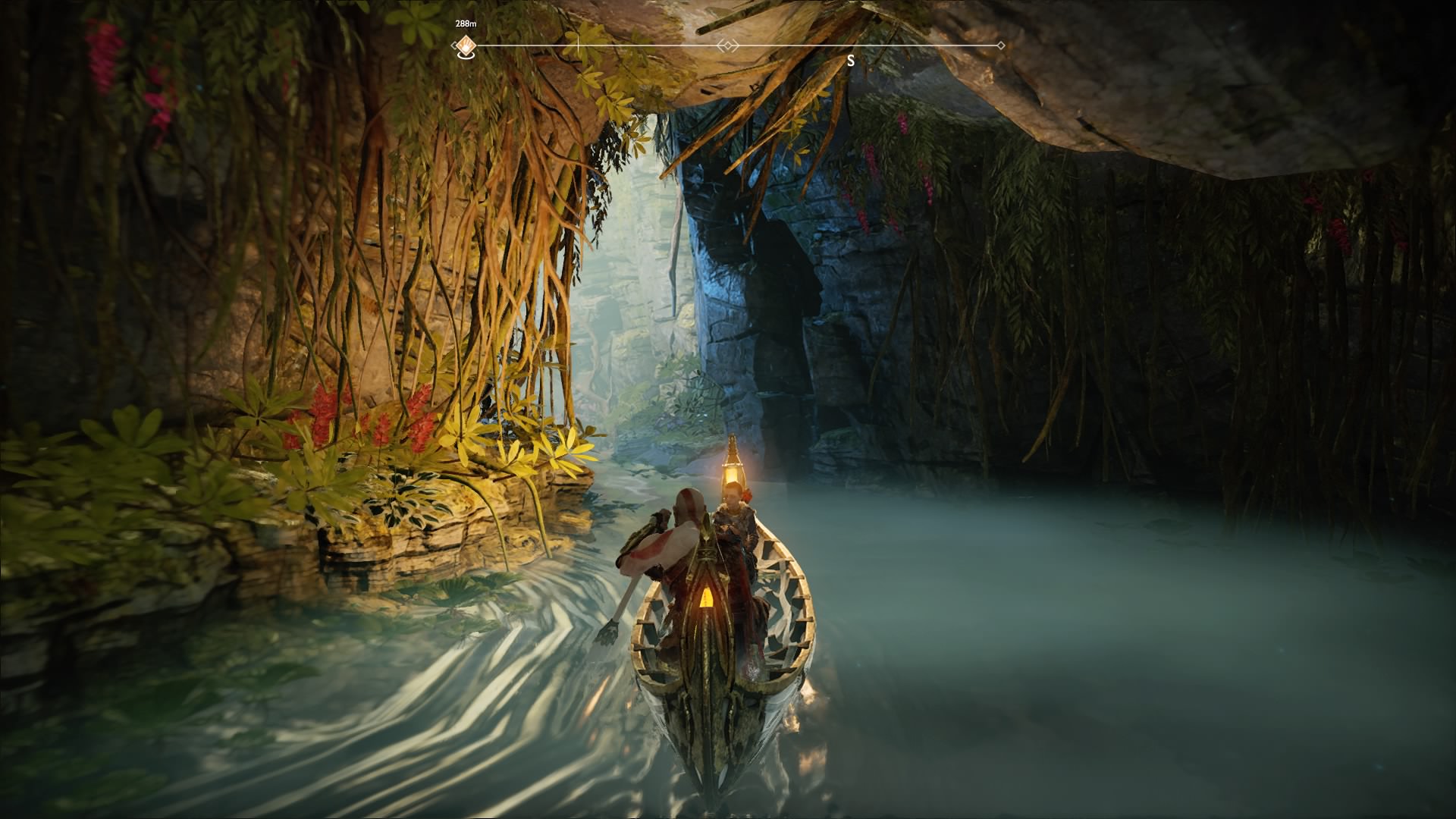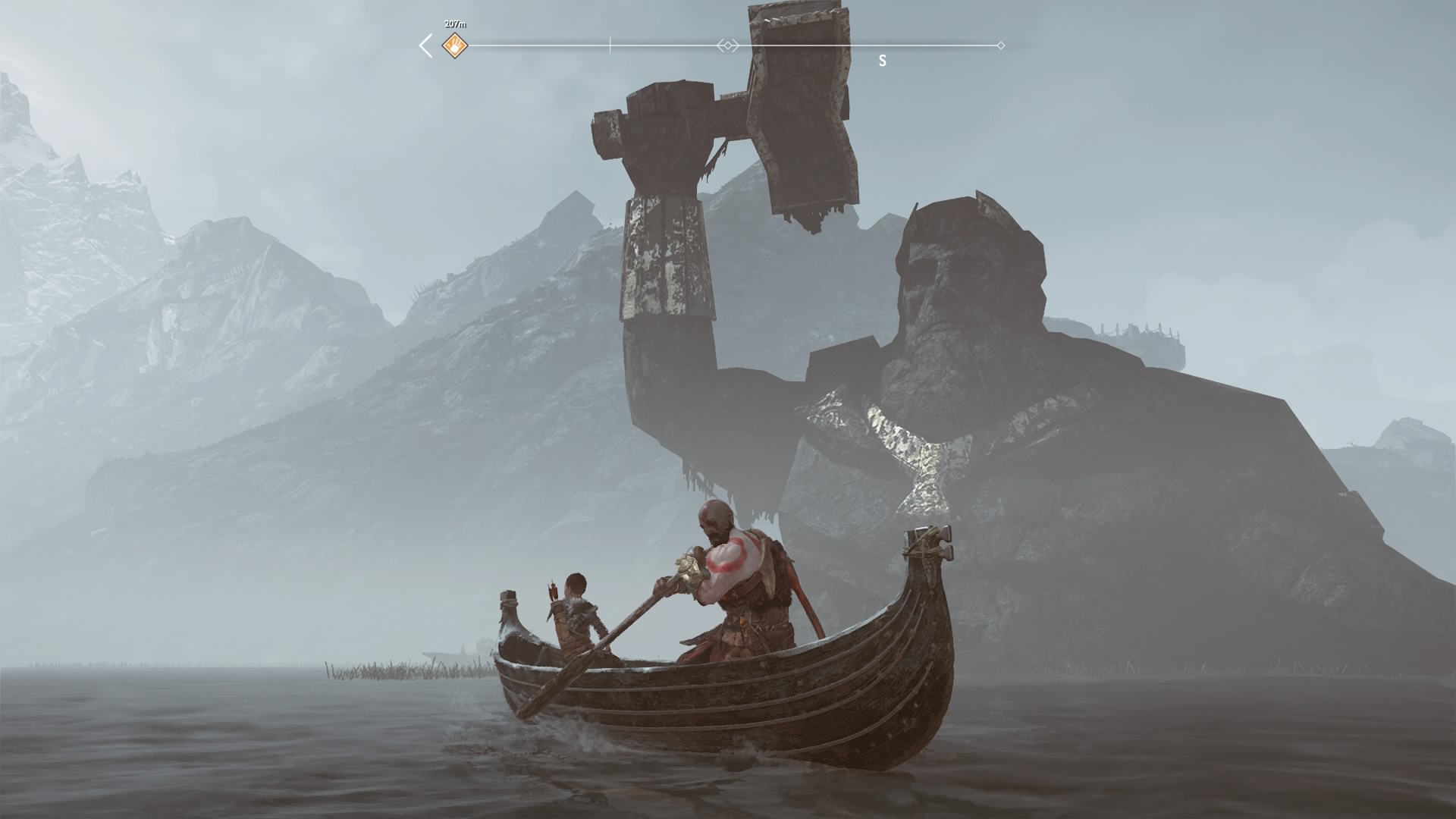 Kratos and Atreus finds the boat a great place to share stories, but only when they’re rowing.
