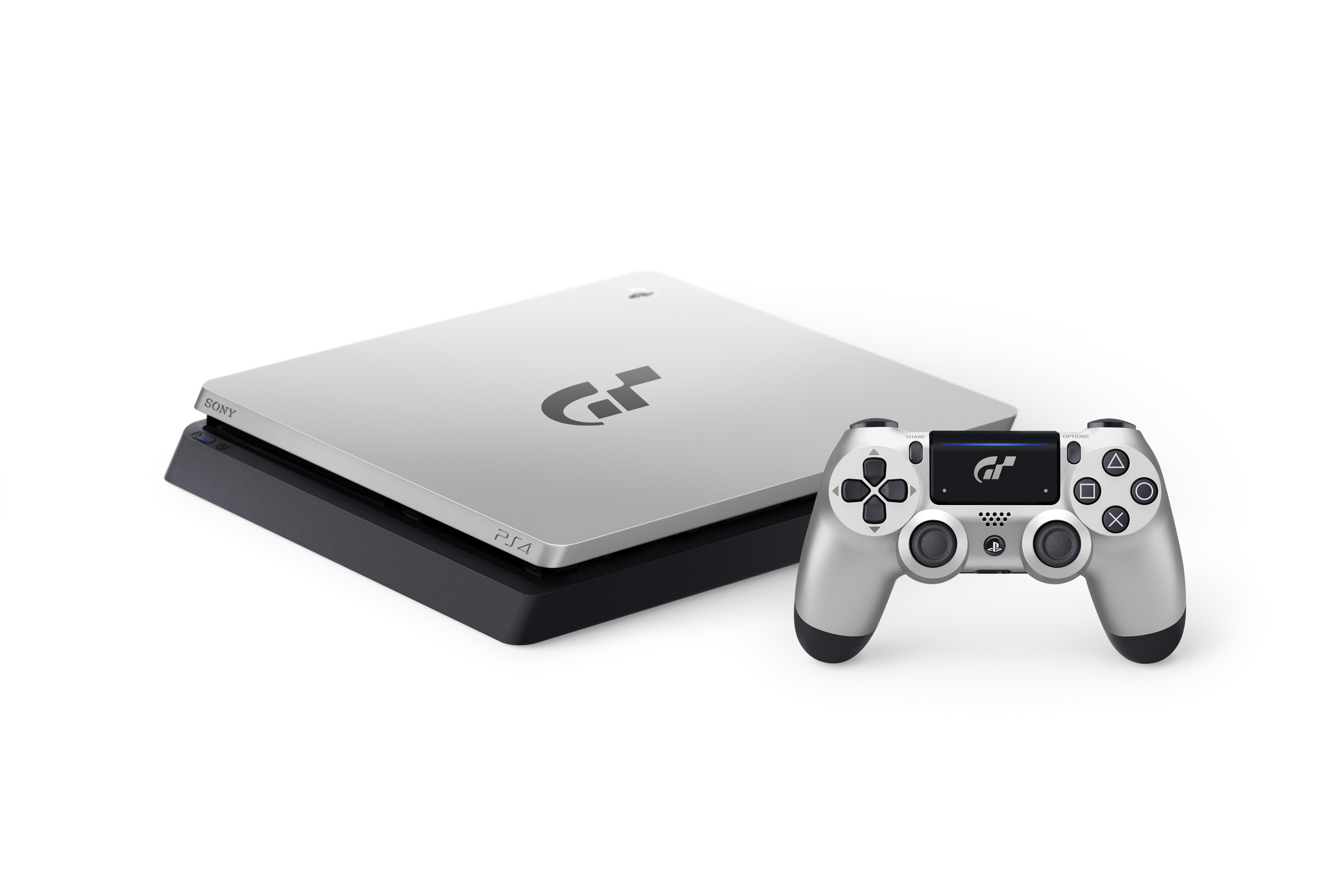 Both the PS4® console and Wireless Controller (DUALSHOCK®4) come in a striking and stylish design jet black and silver two tone with the Gran Turismo logo featured in the center.