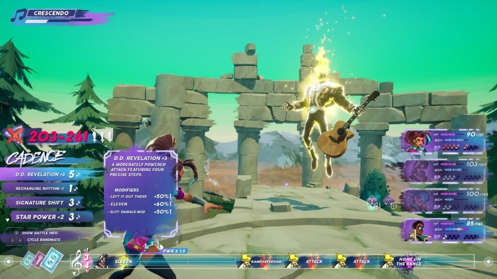 The more I played the game, the more I am reminded of High School Musical. Not because it shares similar plots or anything, but every battle starts and ends with a musical number that’ll either entertain you or leave you suffering in cringe. There is no in between. I’m sure Millennials like myself will probably like this aspect of the game, especially when Cadence’s hometown is some Music Punk version of Zanarkand. There is so much I want to geek out about when it comes to the story, but I feel like these things are better experienced, as words alone do not do them justice.
