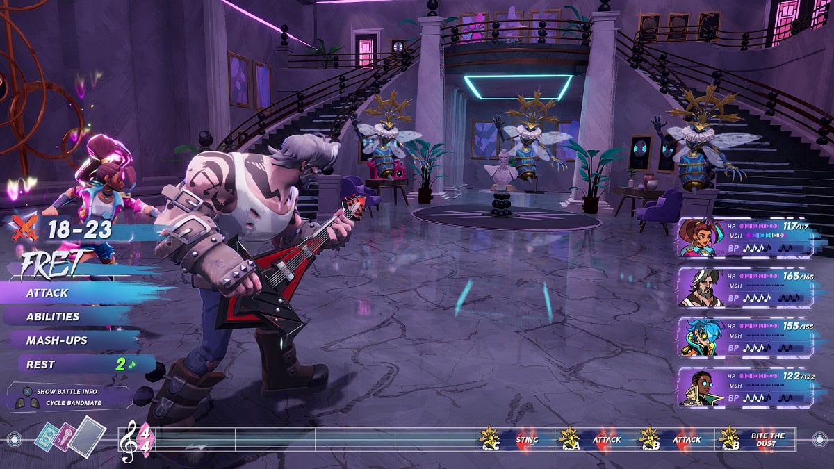 Everything I’ve described so far about the combat especially applies to the boss battles. You are not just solving a puzzle, but you are fighting against the clock to avoid a precarious situation. The longer a boss battle goes on, the more powerful their attacks become. As the Crescendo increases, even basic attacks start to hit like a truck. You are basically asked to either finish fights as quickly as possible or to make a sustainable loop of actions that allows your characters to tank the worst of it while slowly chipping down the boss’s health. This is one of the most intense and rewarding parts of the whole experience.